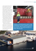 ALL WEATHER TERMINALScontinue working efficiently on open quays in high winds, extreme cold, rain or blizzards. Kokkola normally experiences icy waters between January and April. The port’s northerly location also means a high probability of rainfall throughout the year, but the AWT allows Kokkola to operate at peak efficiency every day of the year as a highly effective hub, handling ingots and slabs, containers, packaged sawn timber, palletised goods, large bags containing chemicals, paper reels and pallets, pulp and project shipments.Kokkola’s AWT handles shipments of locally produced zinc ingots which, due to their porous nature, need to remain dry while being transported from their point of manufacture to customers across the world.The AWT’s overhead gantry crane carries up to 50 tons on the hook at speeds of up to 100 m per minute in all directions. The crane was modified in 2011 at a cost of €400,000 allowing it to alter the position of the driver’s cabin allowing the operator to have more visual scope. lKokkola’s northerly location means a high probability of rainfall throughout the year, but the AWT allows the port to operate at peak efficiency every day of the year as a highly effective hub.HANDBOOK & DIRECTORY PORT OF KOKKOLA 37